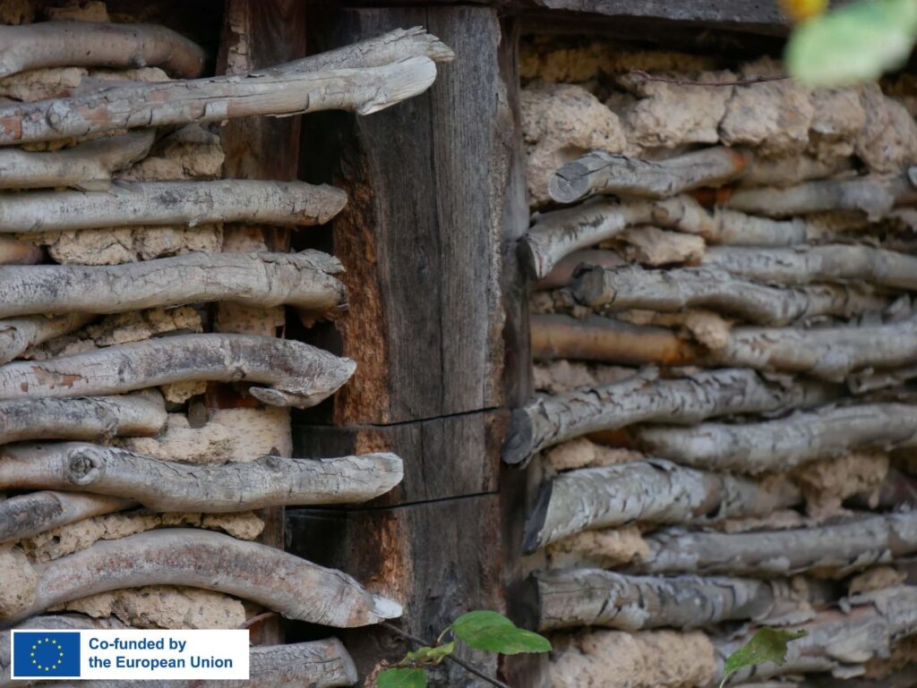When I arrive at the ghost village, I start by climbing to the top to admire the landscape. The view is extraordinary : the mountain seems to split in two, revealing the river winding its way between the rocks. I have only ever seen this landscape from below, but now that I see it from above, I discover another way to appreciate its reliefs which reveal the full beauty of the Iskar gorge. Then I walk around this village whose traditional houses are still in good condition ; sometimes, the surface layer of earth crumbles away, revealing the beautiful network of wood and branches that forms the walls. There is still a farm, the remains of a well, agricultural tools and even an animal skin hanging on a wall.
