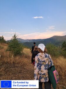 The path we followed led us across a field from where we had a breathtaking view over the Balkan Mountains stretching across the entire horizon.