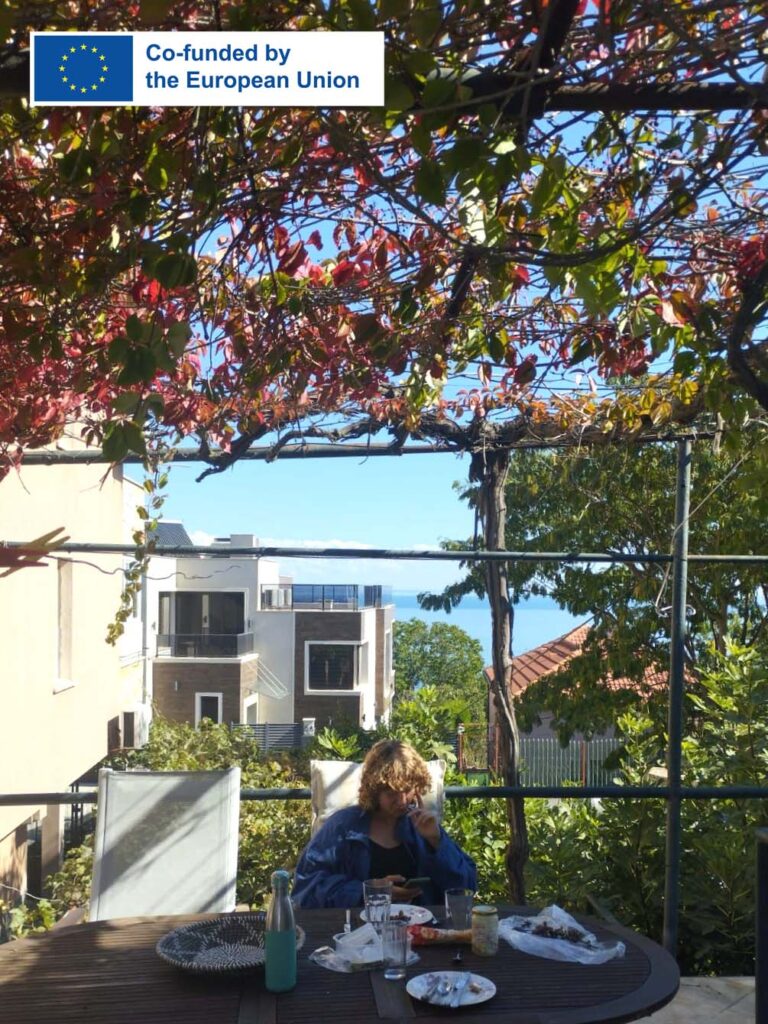 This morning, we pick grapes for Goudan and head to Varna. At the entrance to the Sea Garden, a man stands there every day blowing bubbles ; he makes the place enchanting and amuses the children. A group of people gather around him and start dancing lively traditional dances. Today, the centre is bustling because it is Independence Day ; we get on a cinema-bus showing a documentary, and once again bump into Denis by chance. On the way out, we meet a mysterious guy who loves exploring cities and making maps ; he talks to us passionately about Sofia and convinces us to go back there. Next to us is a table where we can taste homemade jams and lyutenitsa ; we try them and meet Tatyana, who speaks to us in perfect French. She is a film director and is in Varna for a film festival. The closing ceremony will take place the next day, so we will go to see it and support her.