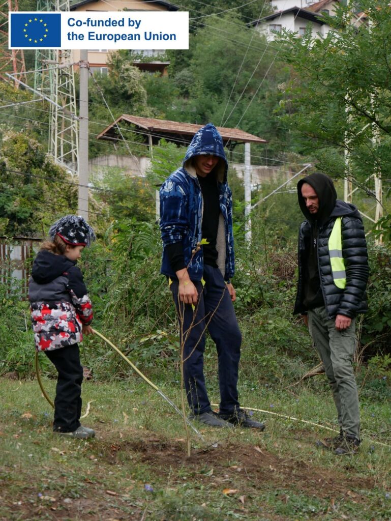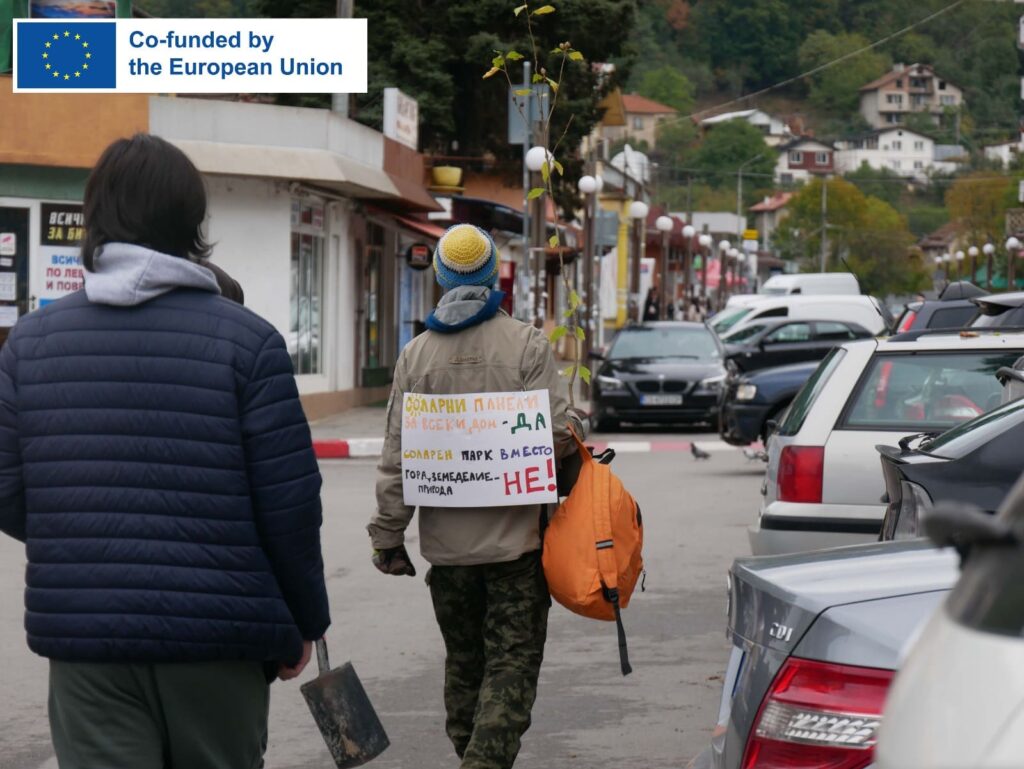 This Saturday, we gathered in the centre of Svoge for the start of the demonstration. Equipped with our banners, we marched through the town, trying to get our message across to passers-by and motorists as much as possible. We ended our march at the church of Svoge, where we symbolically planted young trees ; earlier in the day, we had gone to the forest nursery to dig up two chestnut trees, which we brought back with us, and other participants had also brought young trees which we all planted together in the church garden. Children, adults and young people all joined in this initiative, which turned out to be a beautiful shared experience. The day ended in Svoge square, where a singer-guitarist accompanied by a handpan player gave a concert. It was a wonderful moment that allowed us to see more positivity and have fun together.