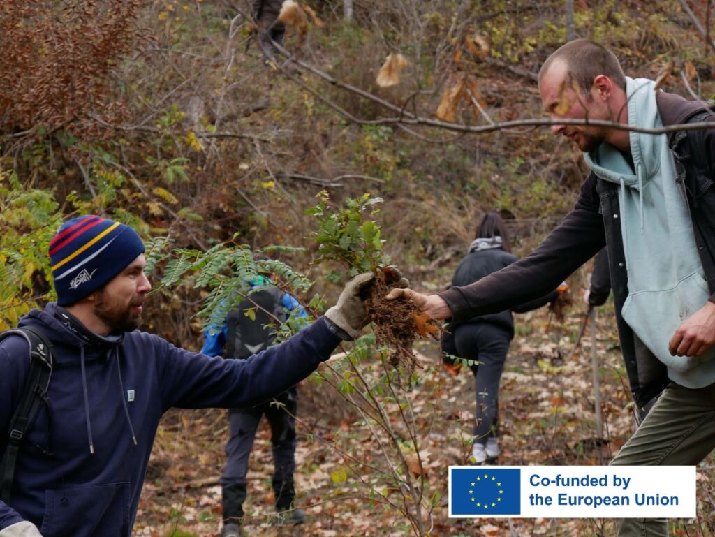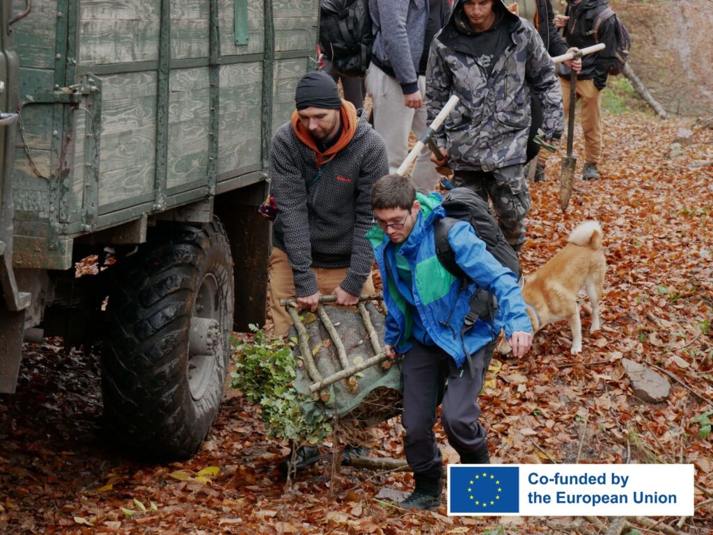 This week, we took part in the annual reforestation effort organized in the mountains around Zhelen. We set off early in the morning for Bov station, where we met up with some of the other participants. We then moved together to Bov stadium, where the foresters took us through the woods in their truck.